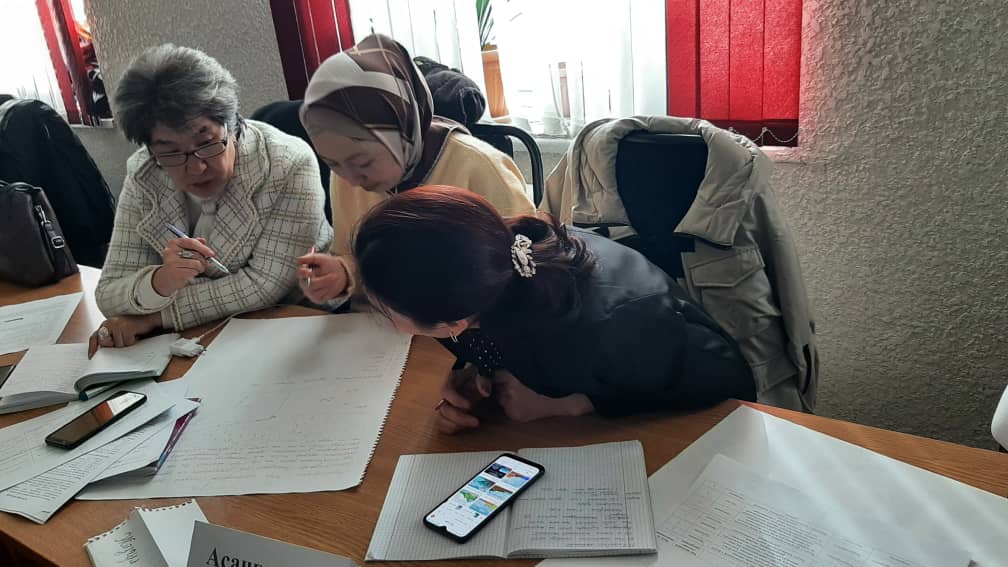 Для проведения сессии “Теория и практика педагогического тестирования. Оценивание функциональной грамотности учащихся” были приглашены Мыкыева М.Р. – координатор по оцениванию и Турсунбай кызы Ы. – консультант по разработке и внедрению стандартизированных тестов для 4-х и 8-х классов проекта Всемирного Банка “Образование для будущего” при МОН КР. На данной сессии участники курса познакомились с особенностями разработки и оценивания PISA-подобных заданий, а также результатами мониторинга функциональной грамотности учащихся 5 и 6-х классов. В практической части сессии участники семинара поработали с компьютерными тестами и получили рекомендации по анализу результатов тестирования. | |